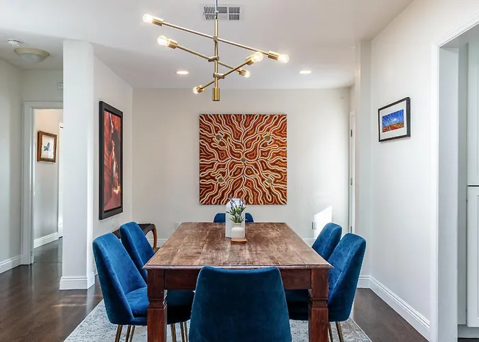 Situata nel distretto West Los Angeles, la casa vacanze si trova a 18 minuti di auto dall'aeroporto Internazionale di Los Angeles. Il Melrose Place dista 15 minuti di auto da questa villa. Gli ospiti possono anche visitare il Westwood Village Memorial Park Cemetery, situato a circa 20 minuti in macchina.